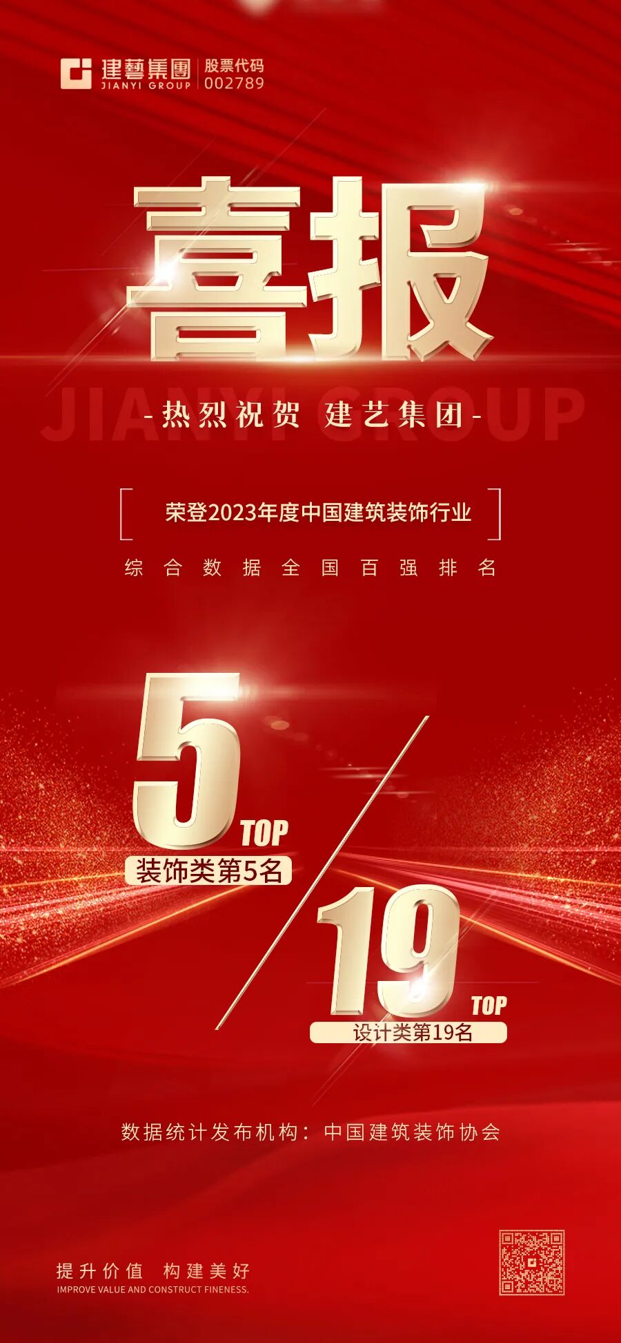 【重磅】建藝集團連續(xù)榮登中國建筑裝飾行業(yè)綜合百強榜裝飾類第5名、設計類第19名,榮獲三項“中國建筑工程裝飾獎”