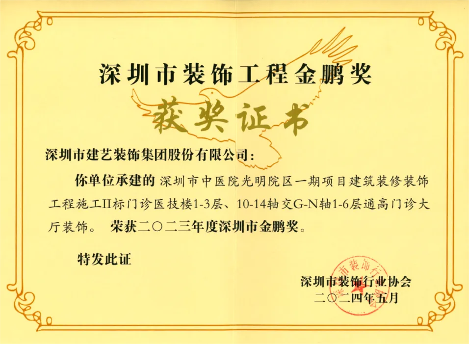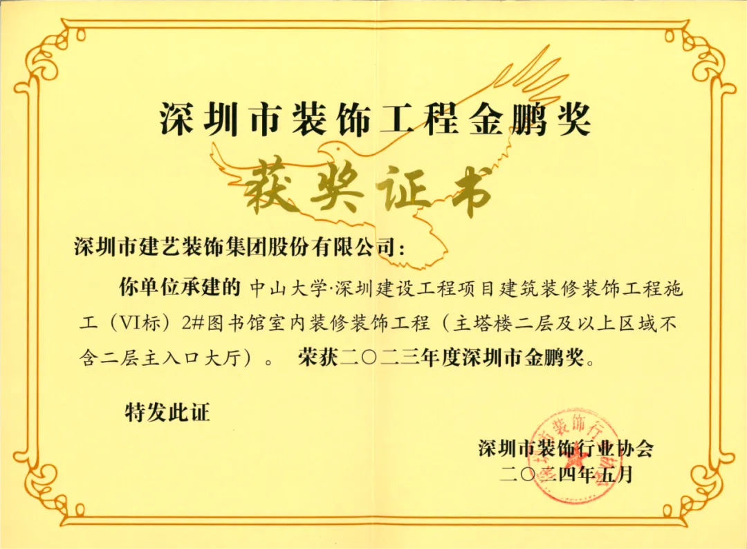 【喜報】熱烈祝賀建藝集團榮獲3項“2023年度深圳市裝飾工程金鵬獎”
