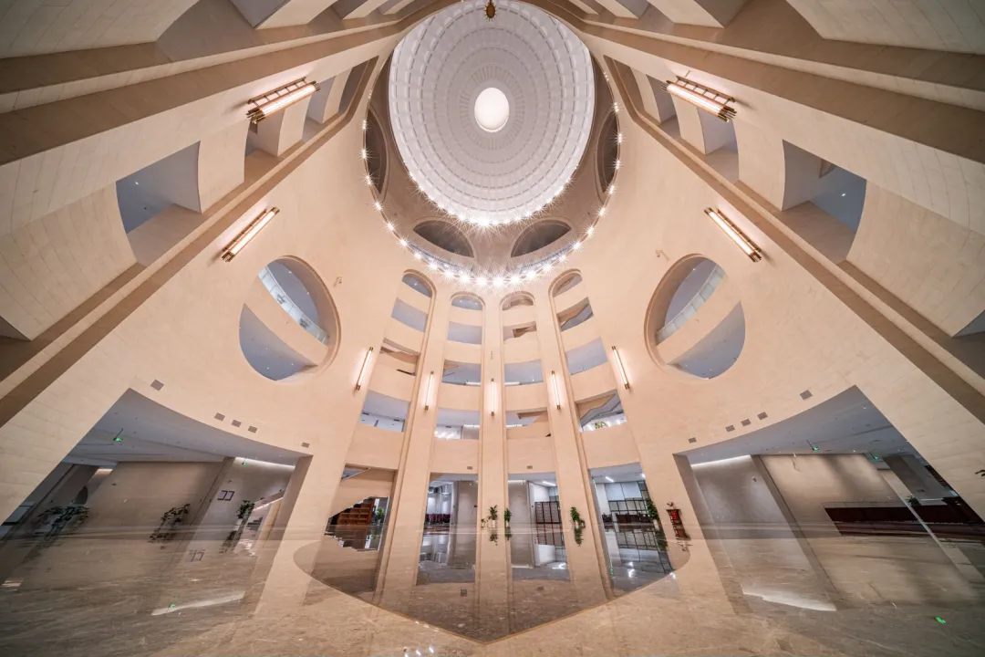中山大學深圳校區(qū)圖書館屹立于相山之上,是校區(qū)標志性建筑物連成的中軸線的最高點,整體建筑延用中山大學本身的紅墻綠瓦建筑風格,具有輝煌美麗的“穹頂”,體現(xiàn)中山大學“吾校矗立,蔚為國光”的精神風貌。建藝集團負責中山大學?深圳建設工程項目VI標段裝修裝飾,合同造價8291萬元。