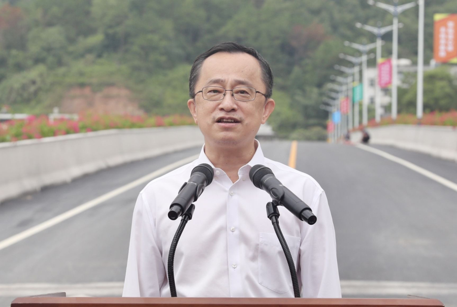 梅州市委書(shū)記、市人大常委會(huì)主任陳敏宣布大橋竣工通車(chē)
