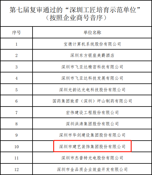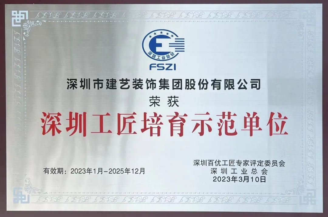 喜訊 | 建藝集團再獲“深圳工匠培育示范單位”稱號