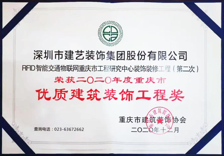 繼榮獲“中國建筑工程裝飾獎”殊榮后,建藝集團承建項目——RFID智能交通物聯網重慶市工程研究中心裝飾工程近日再獲“2020年度重慶市優(yōu)質建筑裝飾工程獎”。