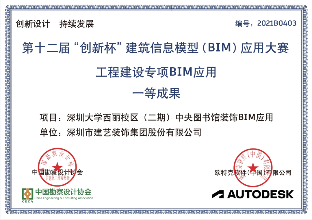 建藝集團(tuán)利用BIM技術(shù)提高精細(xì)化建造水平,建造質(zhì)量精品工程,通過(guò)BIM模型進(jìn)行深化設(shè)計(jì),優(yōu)化施工方案、施工節(jié)點(diǎn)、材料排版,利用模型生成精裝修深化排布圖紙,指導(dǎo)現(xiàn)場(chǎng)施工,同時(shí)基于BIM模型,對(duì)方案安全性、合理性、可建造性等方面進(jìn)行審核,做到提前更正,降低變更風(fēng)險(xiǎn),提高工程質(zhì)量。在提升提高工作效率方面更是通過(guò)深圳市建筑工務(wù)署B(yǎng)IM協(xié)同管理平臺(tái)進(jìn)行日常維護(hù)和管理,使各項(xiàng)目參與方可在同一模型上進(jìn)行多方位立體溝通,提高信息化管理水平,提供施工效率。憑借創(chuàng)新的BIM應(yīng)用,項(xiàng)目榮獲了第十二屆“創(chuàng)新杯”建筑信息模型(BIM)應(yīng)用大賽工程建設(shè)專項(xiàng)BIM應(yīng)用一等成果的榮譽(yù)。