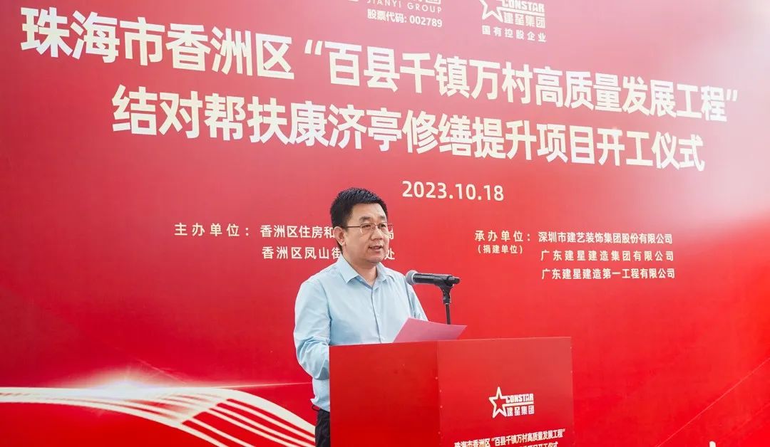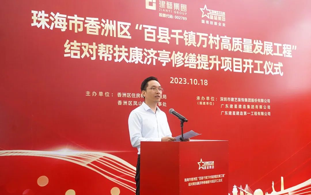 珠海市香洲區(qū)住房和城鄉(xiāng)建設(shè)局黨組書記黃志輝代表區(qū)委、區(qū)政府對建藝集團、建星集團結(jié)對幫扶致以衷心感謝。他表示,康濟亭修繕提升工程的動工,不僅是區(qū)積極貫徹省、市“百縣千鎮(zhèn)萬村高質(zhì)量發(fā)展工程”工作重要開端,也是推進企業(yè)結(jié)對幫扶工作典范。項目的建設(shè)將有力推動全區(qū)引入社會力量參與歷史建筑保護工作,為賡續(xù)城市文脈、提升城市品位、進一步豐富城市內(nèi)涵做出貢獻。