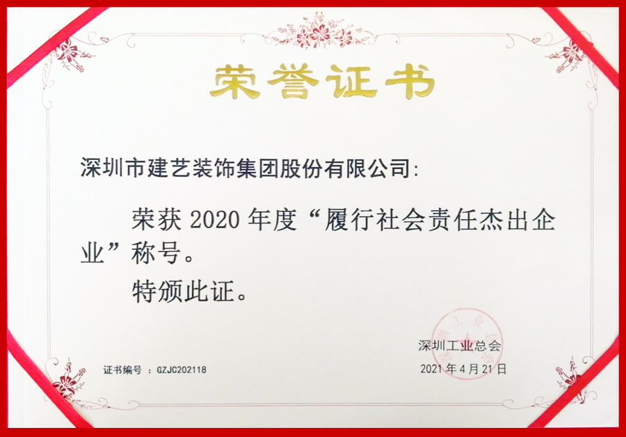 【建藝動態(tài)】履責任·踐使命·助發(fā)展——建藝集團獲評2020年度“履行社會責任杰出企業(yè)”稱號