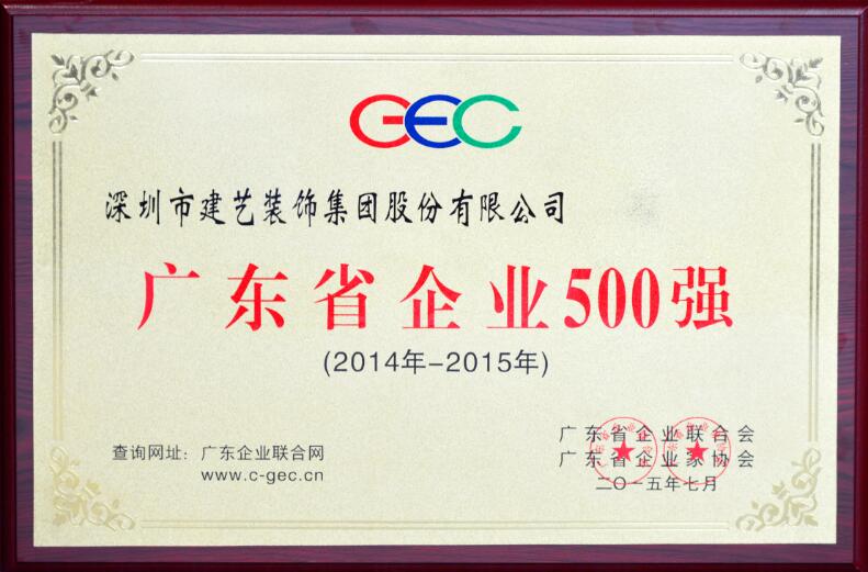建藝集團(tuán)獲評(píng)2015年廣東省企業(yè)500強(qiáng)