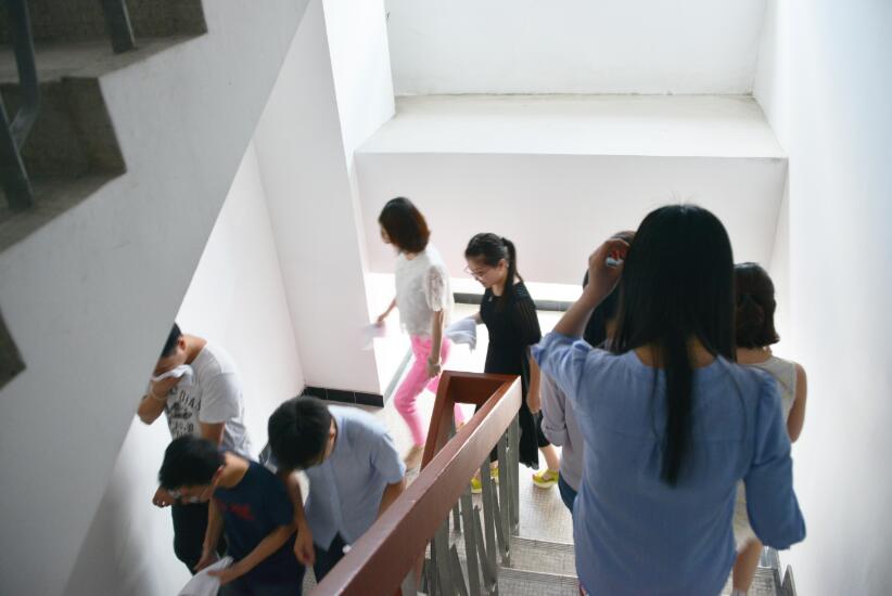 建藝集團(tuán)員工在有序的從安全通道撤離大廈