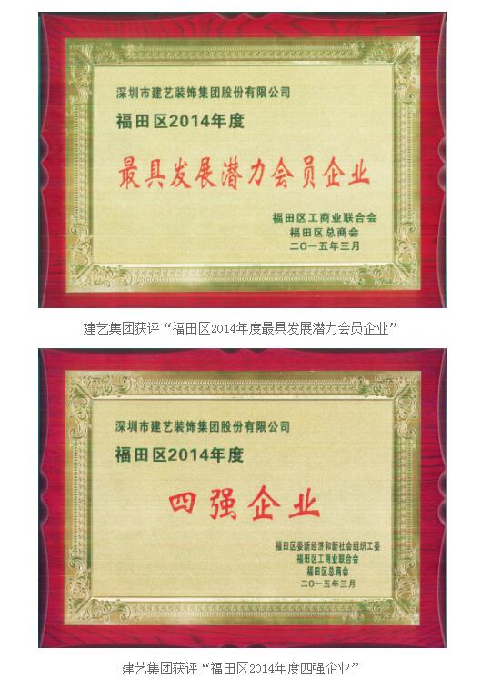 建藝集團喜獲福田區(qū)工商聯(lián)(總商會)“2014年度最具發(fā)展?jié)摿T企業(yè)”、“2014年度四強企業(yè)”榮譽