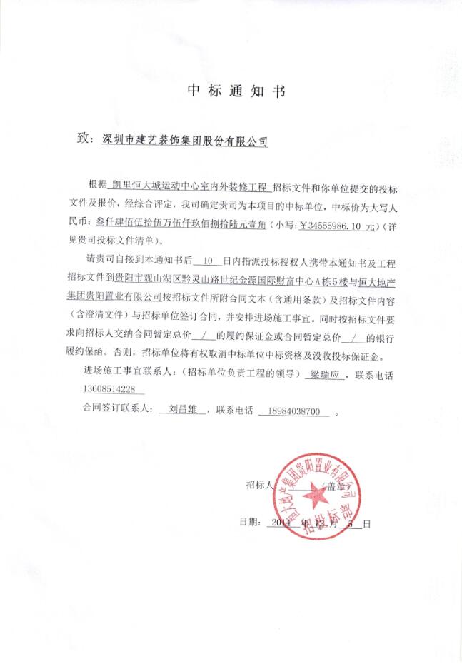 【喜訊】:凱里恒大城運(yùn)動(dòng)中心室內(nèi)外裝修工程中標(biāo)