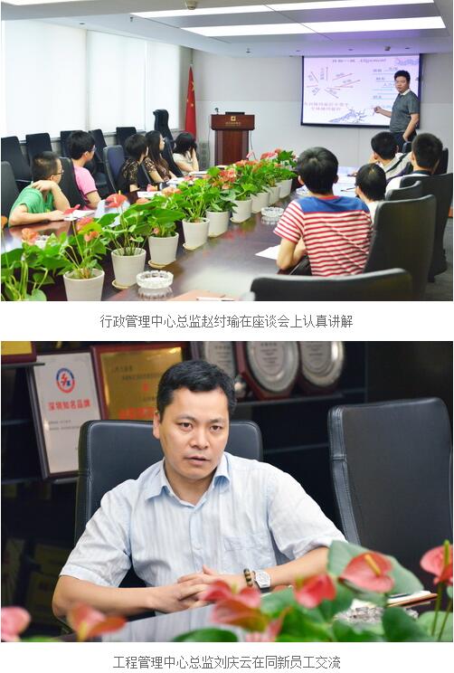 鑒于此,本著系統(tǒng)了解新員工對目前工作環(huán)境和工作崗位的適應情況,幫助新員工加深對公司企業(yè)文化的理解,培養(yǎng)新員工擁有良好的工作心態(tài)和職業(yè)素養(yǎng)這一初衷,6月13日,集團行政管理中心在會議室專門舉辦了“2014年新員工座談會”。本次座談會由行政管理中心總監(jiān)趙紂瑜主持主講,工程管理中心總監(jiān)劉慶云及人力資源部副總經(jīng)理張維作為特邀“嘉賓”共同參加了本次座談會,并在會上與2014年入職的集團總部新員工一同進行了深入交流與探討。