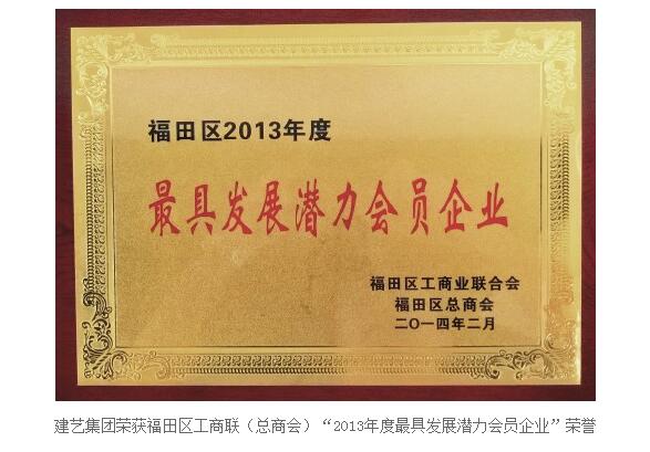 建藝集團(tuán)喜獲福田區(qū)工商聯(lián)(總商會(huì))“2013年度最具發(fā)展?jié)摿?huì)員企業(yè)”榮譽(yù)