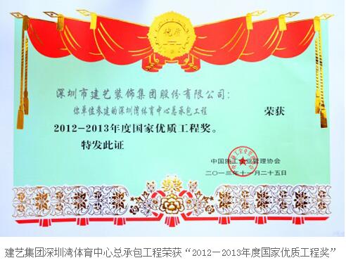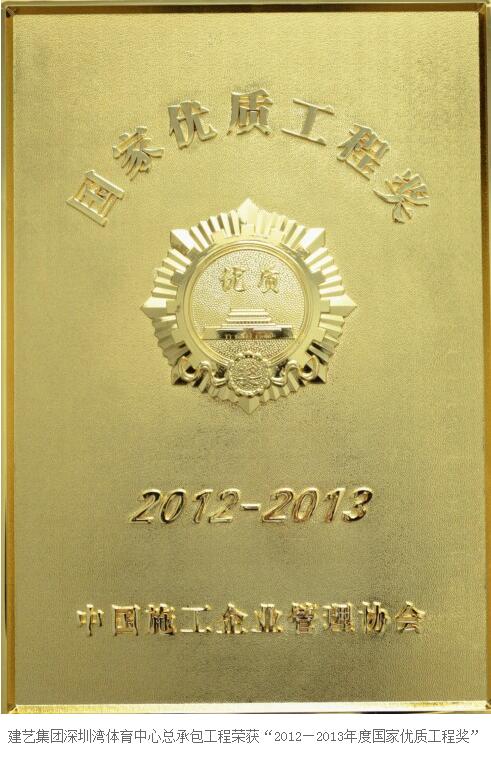 建藝集團(tuán)深圳灣體育中心總承包工程喜獲“2012-2013年度國家優(yōu)質(zhì)工程獎”