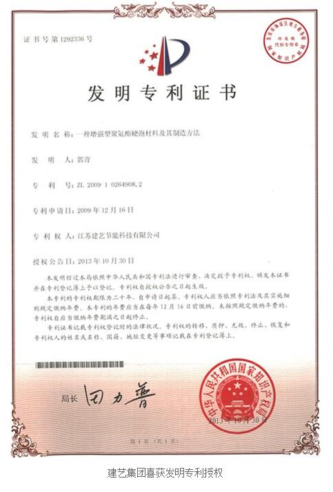 近日,建藝集團(tuán)申報(bào)的發(fā)明專利《一種增強(qiáng)型聚氨酯硬泡材料及其制造方法》(專利號(hào):ZL 200910264908.2)獲得國(guó)家知識(shí)產(chǎn)權(quán)局的授權(quán)。該專利由建藝集團(tuán)下屬企業(yè)——江蘇建藝節(jié)能科技有限公司主持研發(fā),是一種新型的建筑外墻保溫材料。通過多項(xiàng)工程的實(shí)際應(yīng)用證明,該專利材料在改善產(chǎn)品性能、降低制造成本以及節(jié)能環(huán)保等方面均有顯著效果。