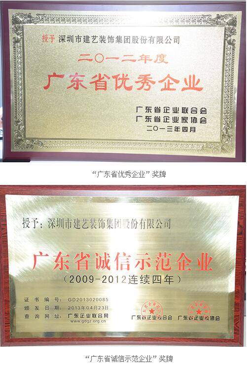 建藝集團(tuán)再次榮獲“廣東省優(yōu)秀企業(yè)”、“廣東省誠(chéng)信示范企業(yè)”稱號(hào)