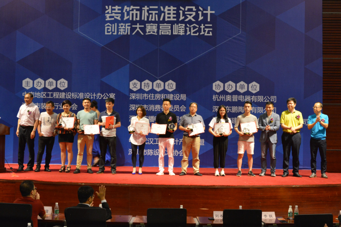 在“中南標(biāo)2016裝飾標(biāo)準(zhǔn)設(shè)計(jì)創(chuàng)新大賽”頒獎(jiǎng)環(huán)節(jié),建藝集團(tuán)不負(fù)眾望,斬獲多項(xiàng)獎(jiǎng)項(xiàng),包括:工藝創(chuàng)新金獎(jiǎng)1項(xiàng)(獲獎(jiǎng)人:建藝集團(tuán)工程總監(jiān)韓佛,獲獎(jiǎng)作品:《雙層輕鋼龍骨隔音墻施工工法》)、設(shè)計(jì)創(chuàng)新銀獎(jiǎng)2項(xiàng)(獲獎(jiǎng)人:建藝集團(tuán)設(shè)計(jì)研究院楊圣滔、劉小飛)、材料創(chuàng)新銀獎(jiǎng)1項(xiàng)(獲獎(jiǎng)單位:深圳市富山厚土建材有限公司),另有多人獲得設(shè)計(jì)創(chuàng)新銅獎(jiǎng)等。