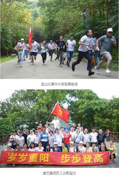 金秋九月,丹桂飄香。2013年10月12日,在重陽(yáng)節(jié)來(lái)臨之際,建藝集團(tuán)組織總部員工開展了一次主題為“歲歲重陽(yáng),步步登高”的筆架山登山活動(dòng)。重陽(yáng)節(jié)登高是中華民族的傳統(tǒng)習(xí)俗,這個(gè)季節(jié)登高可達(dá)到心曠神怡、健身祛病的效果。