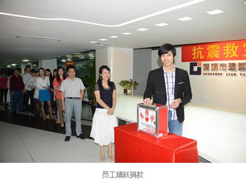 在捐款儀式上,劉海云董事長走到募捐箱前,個人向災(zāi)區(qū)捐款一萬元,同時也號召每一位建藝員工為災(zāi)區(qū)同胞捐款,希望能夠起到聚沙成塔的效用,真正對雅安災(zāi)區(qū)的重建進獻綿薄之力。集團全體員工紛紛解囊,獻出自己的一份愛心,在項目及外地出差的建藝人,在得知總部舉行抗震救災(zāi)捐款活動之后,主動要求同事幫忙代捐,表達(dá)建藝人對災(zāi)區(qū)的一份真情。