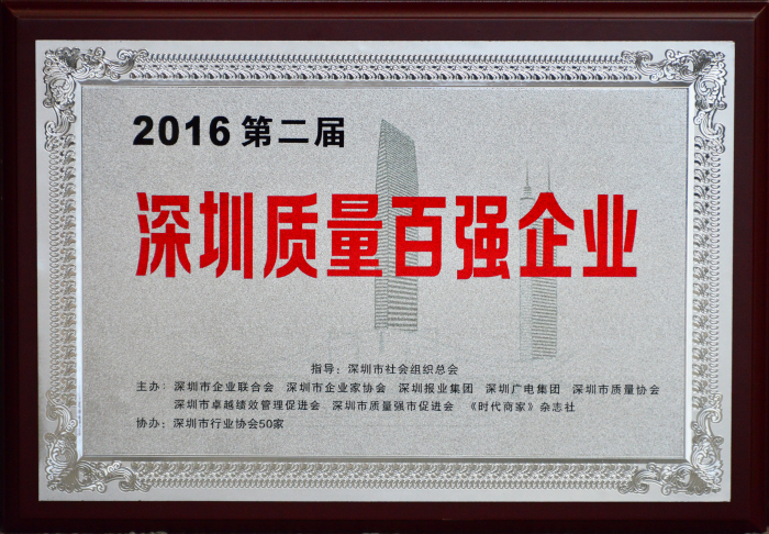 建藝集團喜獲“2016第二屆深圳質量百強企業(yè)”榮譽獎牌