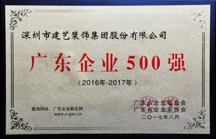 建藝集團(tuán)榮獲“廣東企業(yè)500強(qiáng)”及“廣東民營企業(yè)100強(qiáng)”