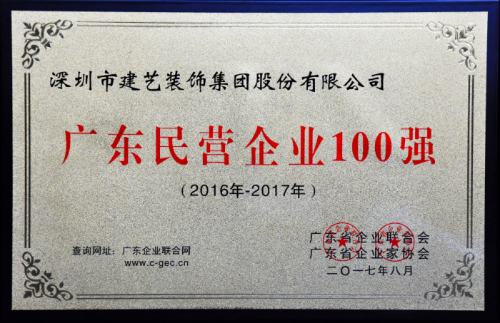 建藝集團(tuán)榮獲的“廣東民營企業(yè)100強(qiáng)”獎牌