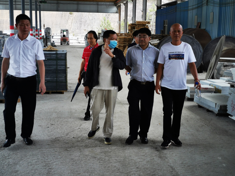 劉海云董事長與林忠云常委等領導在廣東建藝石材廠區(qū)