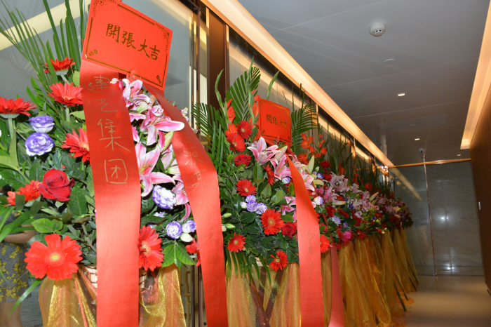 建藝集團(tuán)、建藝控股董事會主席劉海云向潘總送上開業(yè)賀禮
