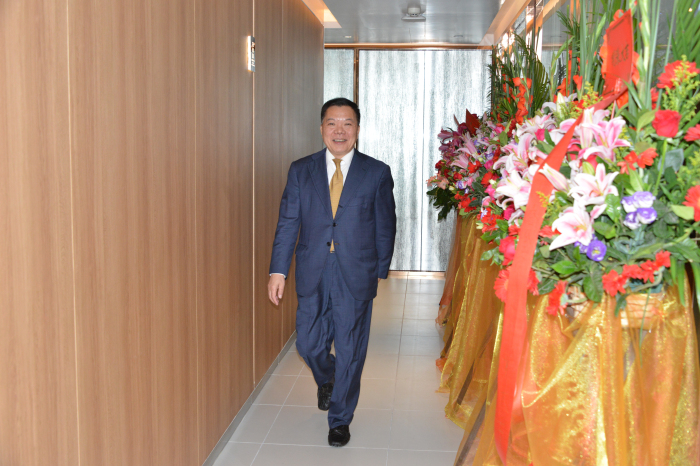 建藝集團(tuán)、建藝控股董事會主席劉海云面帶微笑步入開業(yè)典禮現(xiàn)場