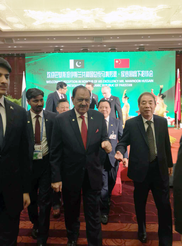 在招待會上,馬姆努恩?侯賽因總統(tǒng)高度肯定了巴中關系,他指出:“世界上沒有任何國家比巴基斯坦更愿意中國富足強盛,巴中兩國友誼世代相傳,巴中友誼萬歲!”