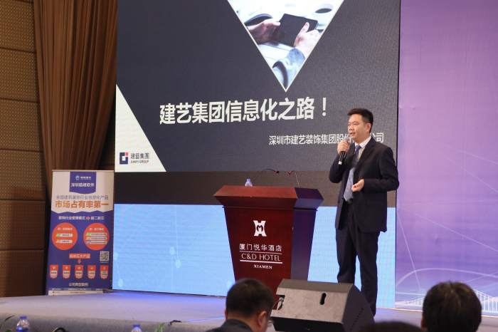 大會(huì)期間,以信息化建設(shè)為主題的龍頭企業(yè)分享環(huán)節(jié)備受關(guān)注。作為行業(yè)領(lǐng)軍企業(yè),建藝集團(tuán)在信息化道路上走出了一條獨(dú)具特色的發(fā)展之路。集團(tuán)副總裁趙紂瑜以此為切入點(diǎn),登臺(tái)發(fā)表了主題為《建藝集團(tuán)信息化之路》的主題演講。