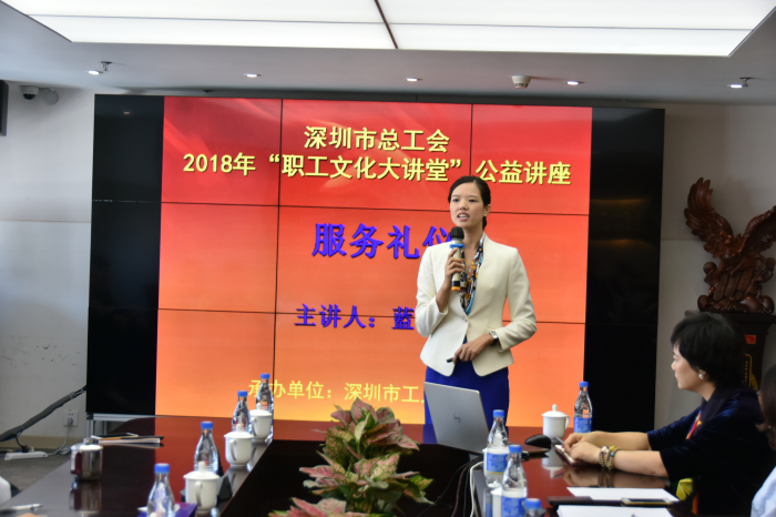 藍(lán)飛霞講師正在介紹禮儀的重要性