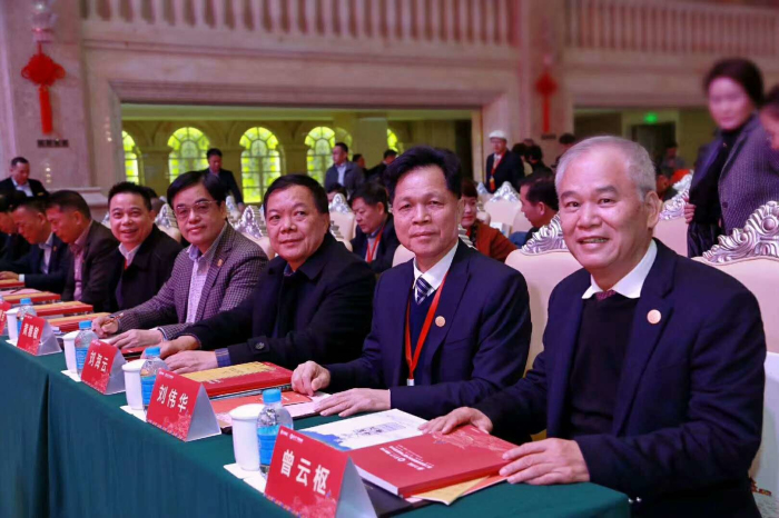 劉海云董事長(zhǎng)(一排右三)等廣東省客家商會(huì)代表團(tuán)成員在會(huì)場(chǎng)一排就坐