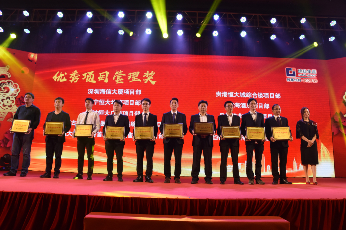 劉珊副董事長(右一)為建藝集團(tuán)優(yōu)秀項(xiàng)目管理獎獲得者頒獎