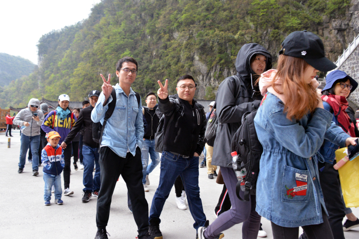 第三站,員工們游覽了張家界國家森林公園,感受了位于袁家界景區(qū)、被譽(yù)為“中國埃菲爾鐵塔”的“百龍?zhí)焯荨?。該電梯位于山谷之間,總高度326米。在電梯上升過程中,游客可觀群山聳立,懸崖絕壁,乃自然景觀與人造景觀的完美結(jié)合。