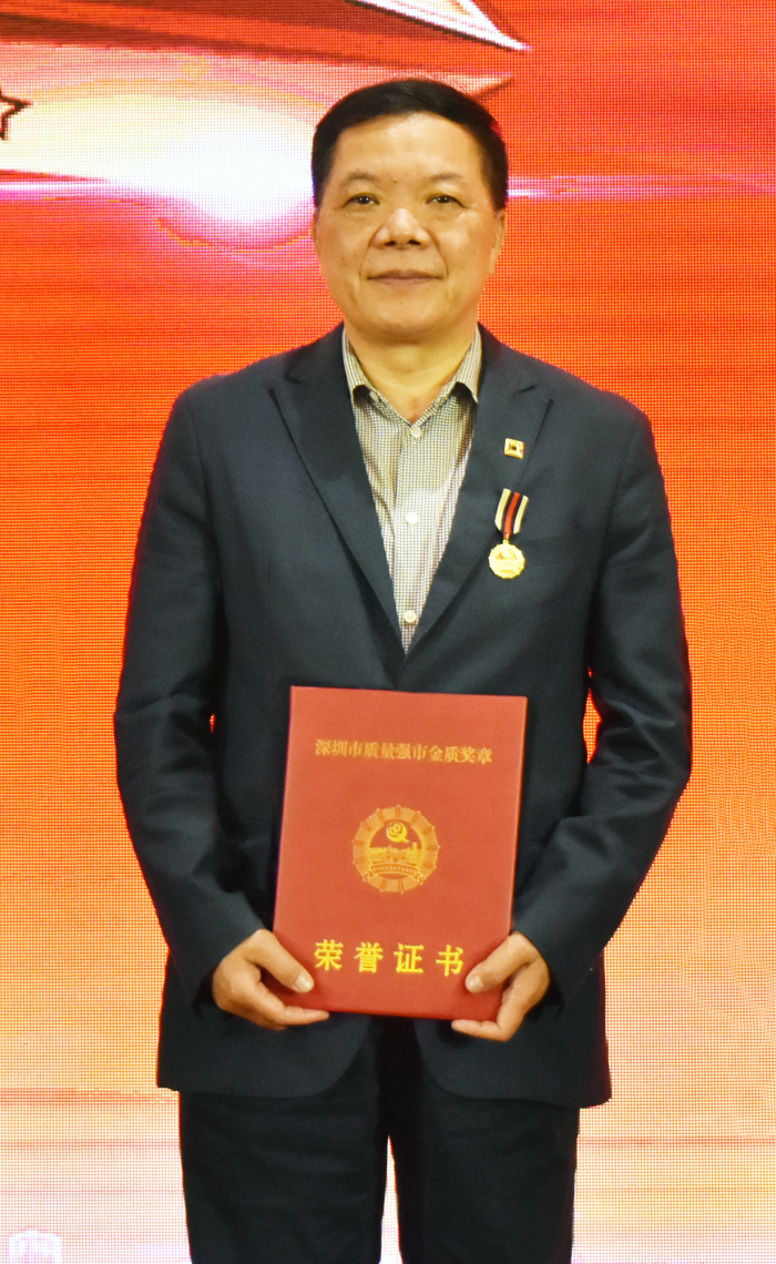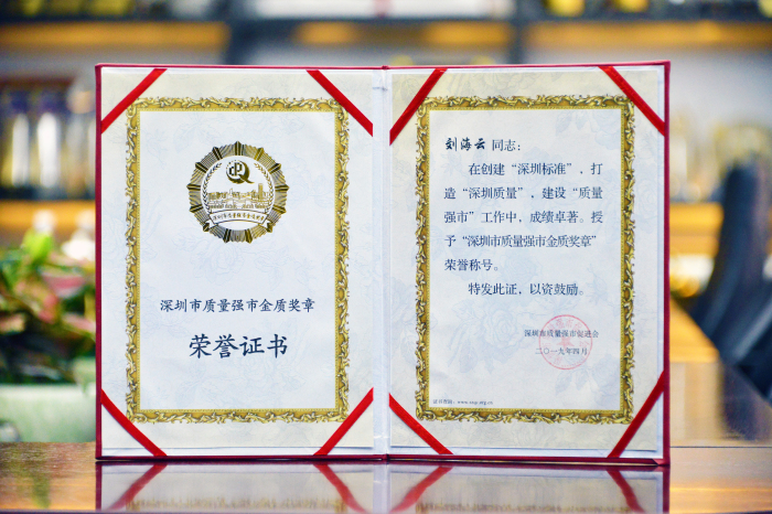 深圳市最高個人質量榮譽——“深圳市質量強市金質獎章”證書