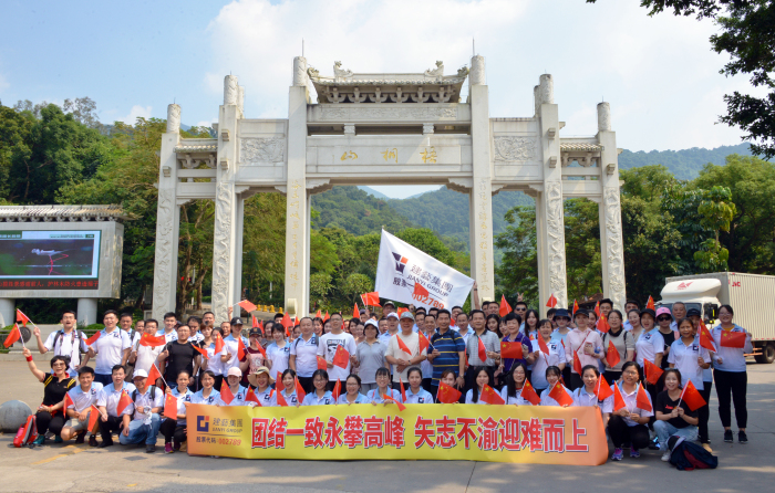 金秋9月,在偉大祖國(guó)成立70周年之際,為豐富員工業(yè)余文化生活,保持昂揚(yáng)工作狀態(tài),感受建藝大家庭濃濃的溫暖,向祖國(guó)獻(xiàn)上來自建藝的祝福,27日,建藝集團(tuán)工會(huì)特別在鵬城第一峰——梧桐山舉辦了主題為“團(tuán)結(jié)一致永攀高峰,矢志不渝迎難而上”的集體登山活動(dòng)?;顒?dòng)得到了集團(tuán)上下的熱烈響應(yīng),建藝集團(tuán)、建藝控股董事會(huì)主席劉海云及建藝集團(tuán)董事、副總裁顏如珍等領(lǐng)導(dǎo)參加了本次集體活動(dòng),并親自率領(lǐng)員工們向山頂進(jìn)發(fā),以積極昂揚(yáng)的拼搏斗志鼓舞、感染著每一名建藝人。