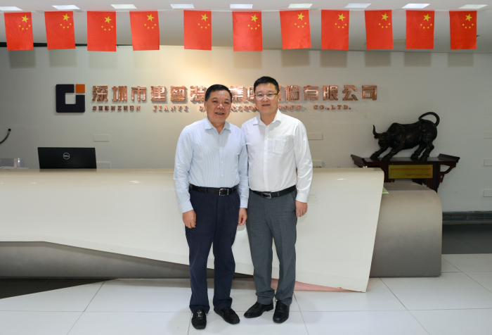 劉海云董事長(zhǎng)與高大偉常委在建藝集團(tuán)總部合影留念