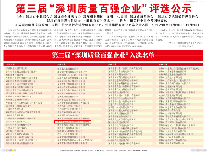 【藝動(dòng)態(tài)】第三屆“深圳質(zhì)量百強(qiáng)企業(yè)”評(píng)選公示:建藝集團(tuán)再次榮譽(yù)入選