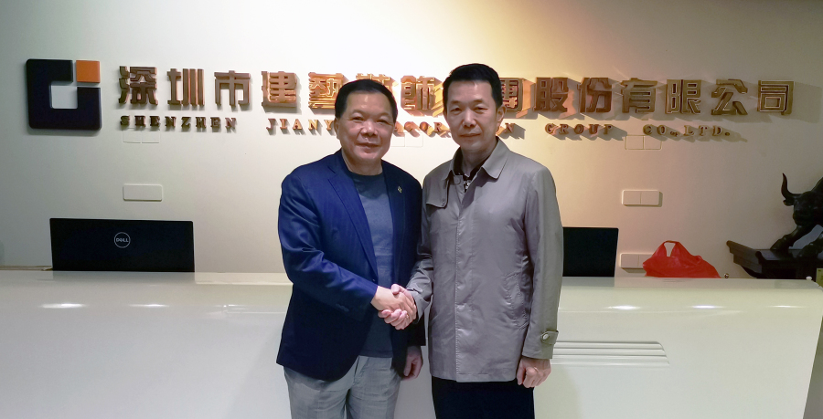劉海云主席與馮文山董事、總經理(右)在建藝總部大廈合影