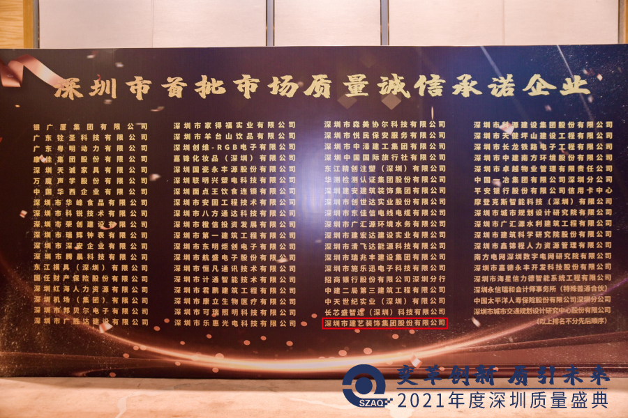 建藝集團(tuán)質(zhì)量誠(chéng)信建設(shè)部分成果:深圳市質(zhì)量強(qiáng)市骨干企業(yè)