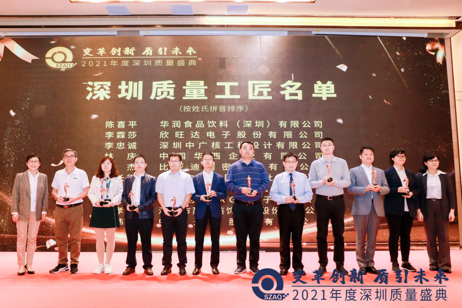 日前,由深圳市質(zhì)量協(xié)會(huì)主辦的“2021年度深圳質(zhì)量盛典”(簡(jiǎn)稱“質(zhì)量盛典”)在南山區(qū)隆重舉行。本屆質(zhì)量盛典以“變革創(chuàng)新,質(zhì)引未來(lái)”為主題,現(xiàn)場(chǎng)頒發(fā)了“深圳質(zhì)量工匠”等獎(jiǎng)項(xiàng)。
