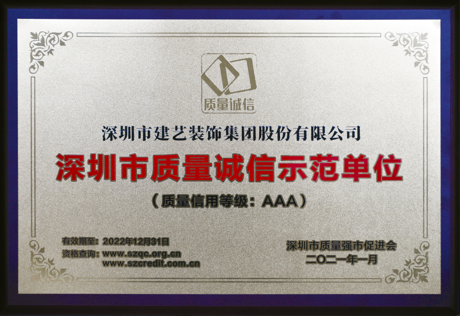 建藝集團(tuán)質(zhì)量誠(chéng)信建設(shè)部分成果:深圳市質(zhì)量誠(chéng)信示范單位