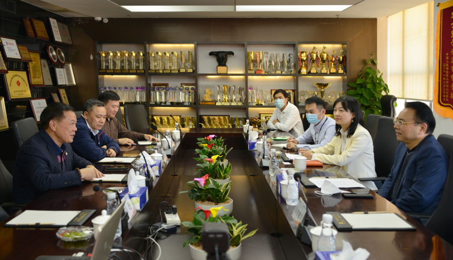 雙方領(lǐng)導(dǎo)在建藝集團總部會議室親切座談