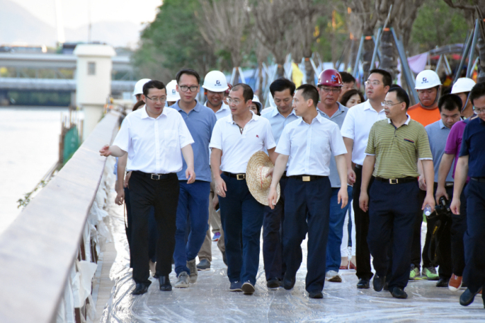 南山區(qū)委書記王強等領(lǐng)導(dǎo)在檢查中了解項目進展