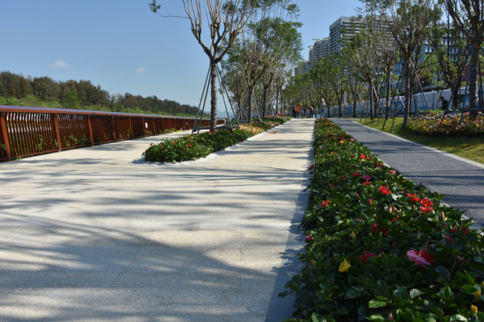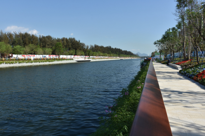 劉總表示:本著“為人民造福、為社會添彩”之宗旨,在嚴(yán)把質(zhì)量關(guān)的同時,建藝團隊始終嚴(yán)格把控現(xiàn)場每個環(huán)節(jié),并充分貫徹綠色環(huán)保標(biāo)準(zhǔn),以高度負責(zé)的專業(yè)精神,配合技術(shù)一流、專業(yè)素質(zhì)過硬的核心團隊精心雕琢。目前,人行道石材鋪裝、自行車道路基施工、截污口裝飾、沿河欄桿施工等正有條不紊進行中,總體形象進度已達70%。在政府部門及社會大眾的關(guān)注與期盼下,建藝集團等施工單位定不負囑托,以高標(biāo)準(zhǔn)、高素質(zhì)的專業(yè)精神,裝點南山“母親河”,打造“綠色新標(biāo)桿”!