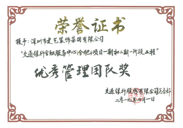 作為交通銀行輻射安徽合肥業(yè)務(wù)區(qū)域的重點金融中心項目,由建藝集團(tuán)(安徽公司)參與打造的交通銀行金融服務(wù)中心(合肥)項目日前圓滿竣工。在隆重的項目竣工表彰大會上,建藝集團(tuán)(安徽公司)憑借卓越的項目管理及一流的施工水平,出色地完成了該項目一期、二期一階段的裝飾施工任務(wù),其精湛的施工技藝與高度負(fù)責(zé)的工作作風(fēng)也獲得了交通銀行方面的充分肯定,一舉摘得“優(yōu)秀項目團(tuán)隊獎”殊榮。同時,安徽公司負(fù)責(zé)人高蔚也憑借高效的項目管理與專業(yè)的施工調(diào)度,榮獲“優(yōu)秀項目經(jīng)理/負(fù)責(zé)人”獎。