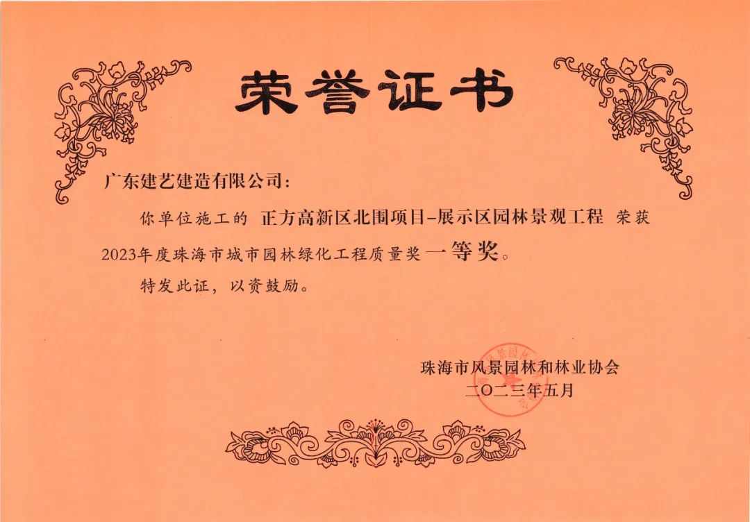 【喜訊】建藝集團(tuán)旗下項(xiàng)目榮獲珠海市城市園林綠化工程質(zhì)量獎一等獎