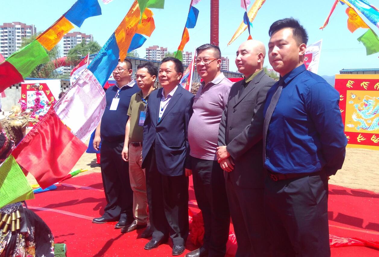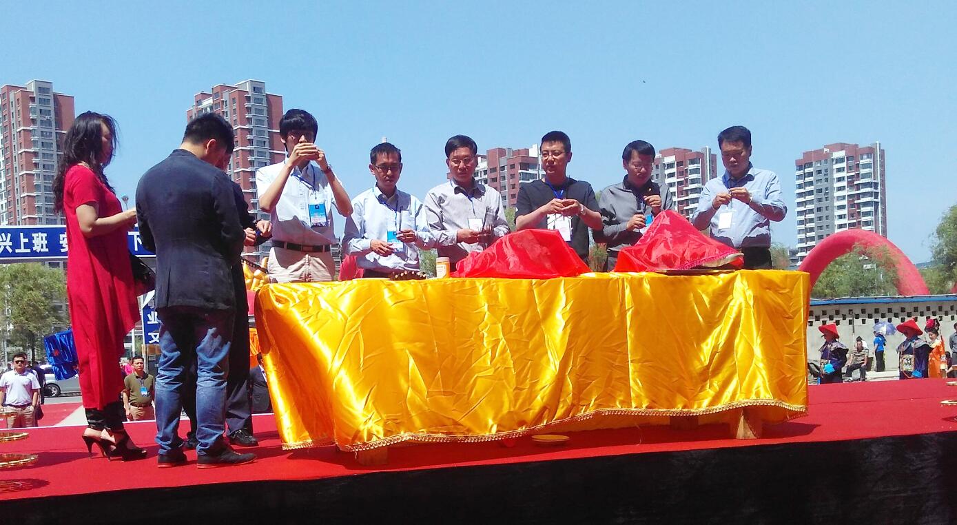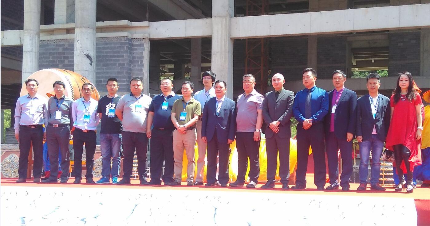 劉海云董事長(一排左八)與當(dāng)?shù)卣I(lǐng)導(dǎo)一起參加慶典