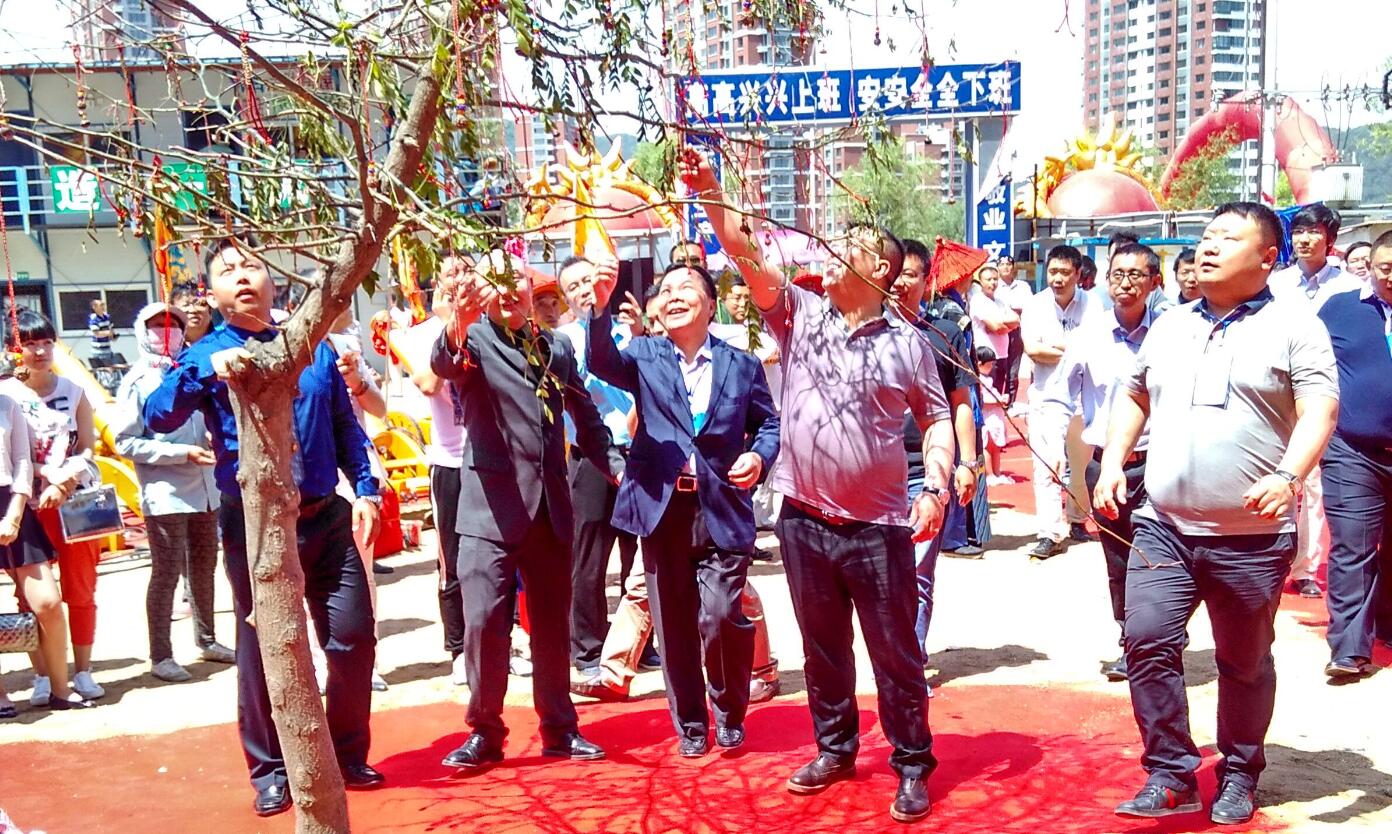 劉海云董事長(左三)等領(lǐng)導(dǎo)在慶典上拉索倫桿