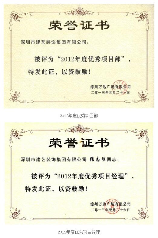 我司張志明同志以認真負責(zé)的工作態(tài)度,吃苦耐勞的奉獻精神,被評為“2012年度優(yōu)秀項目經(jīng)理”。