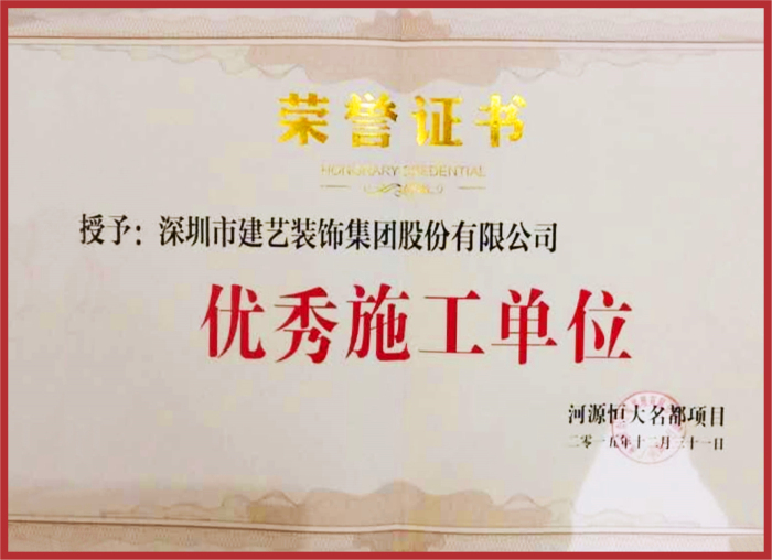 建藝集團(tuán)獲得的“優(yōu)秀施工單位”榮譽(yù)證書